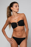 Découvrez le bas Claudine, une pièce élégante et graphique pensée pour allier confort et style. Sa coupe classique est rehaussée par des lanières noires et dorées sur les côtés, apportant un détail structuré et raffiné qui souligne la silhouette avec subtilité.