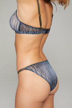 Top triangle CHLOE à imprimé tigre bleu - tissu en mesh transparent