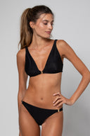 Réalisée dans un tissu LUREX lumineux, la culotte Iris capte la lumière avec subtilité et révèle un léger effet scintillant, qui souligne la silhouette avec finesse et style. Sa matière douce et extensible assure un porté agréable et un confort optimal, que ce soit à la plage ou au bord de la piscine.