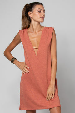 ROBE COURTE DÉCOLLETÉ EN V NOA LUREX COPPER