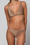 Fabriqué au Portugal à partir d'un tissu certifié OEKO-TEX® Standard 100, le top triangle Iris est disponible en Black, Gold et Copper alliant qualité, confort et respect de la peau dans une pièce chic et contemporaine.