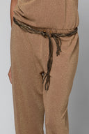 Le tissu LUREX dont elle est confectionnée capte la lumière avec subtilité, offrant un effet légèrement scintillant qui apporte raffinement et élégance. Douce et légèrement extensible, la matière assure un confort optimal et un tombé parfait, accompagnant chaque mouvement avec fluidité.