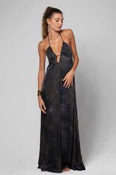 ROBE LONGUE À NOUER THEA IMPRIMÉ BLACK MALT