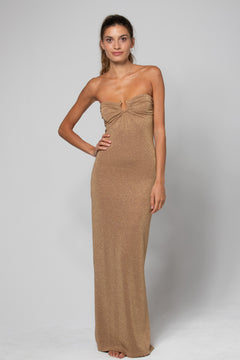 ROBE LONGUE BUSTIER AVEC BIJOU LANA LUREX GOLD
