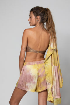 Craquez pour l'ensemble Carla, avec son top triangle en tulle transparent et son tissu en lurex qui capte la lumière pour un effet scintillant. Son maintien optimal et ses bretelles ajustables assurent un confort parfait. Associez-le à la culotte à nouer sur les côtés, décorée de tulle et d’une coupe légèrement échancrée, pour allonger vos jambes et sublimer vos courbes. Disponible en trois coloris raffinés, cet ensemble chic et moderne est l'incontournable de l'été !