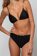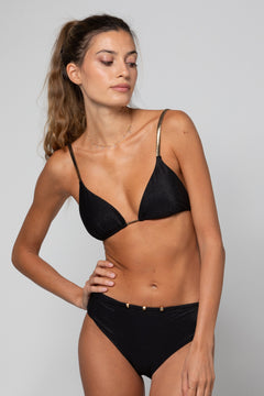 Laissez-vous séduire par Niki, un top de maillot triangle pensé pour mettre en valeur le buste avec élégance et modernité. Ses coques amovibles assurent un maintien modulable, tandis que les bretelles dorées apportent une touche raffinée et sophistiquée, parfaitement assortie au shorty Niki.